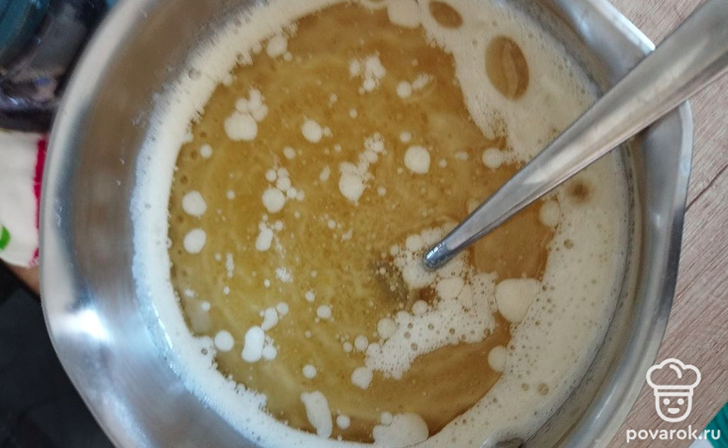 Добавляем растительное масло и снова взбиваем. Засыпаем разрыхлитель. Можно щепоточку соли еще добавить.
