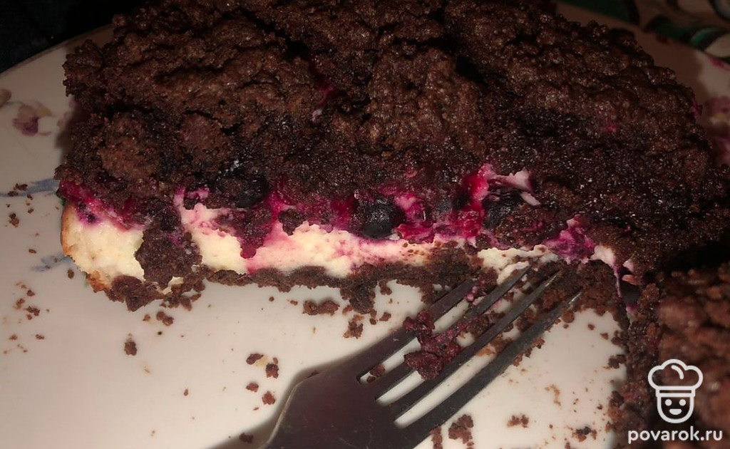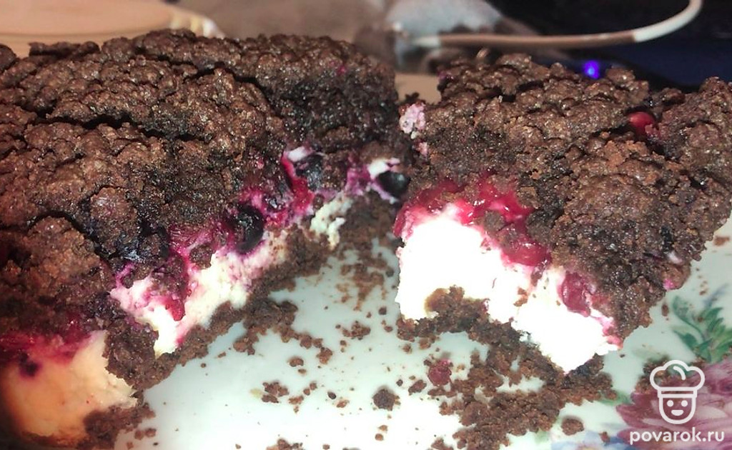 Невероятный и необычный тертый шоколадный пирог с творогом и ягодами. Тесто приятно хрустит и имеет рассыпчатую структуру. Шелковистую, сочную и яркую творожную начинку дополняют любимые ягоды и придают ей незабываемый вкус.