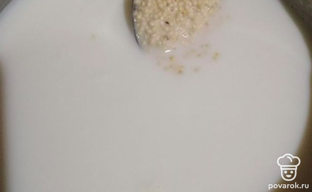 Сварить густую кашу из молока и пшена, добавить сахар и сливочное масло. В готовую остывшую кашу добавить яйцо и перемешать до однородной массы.