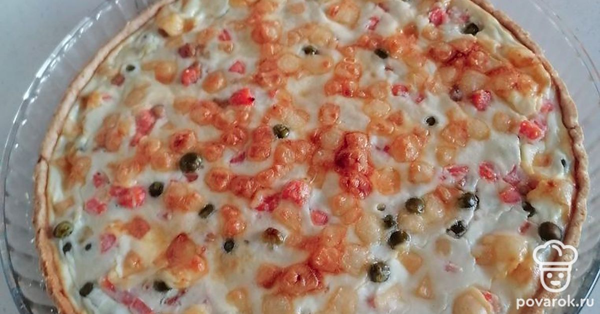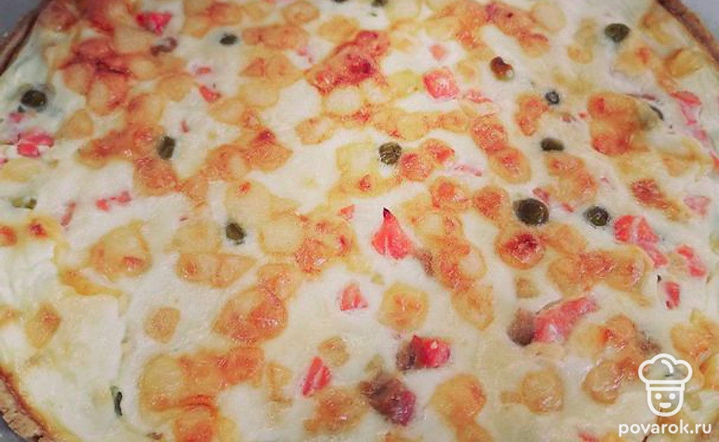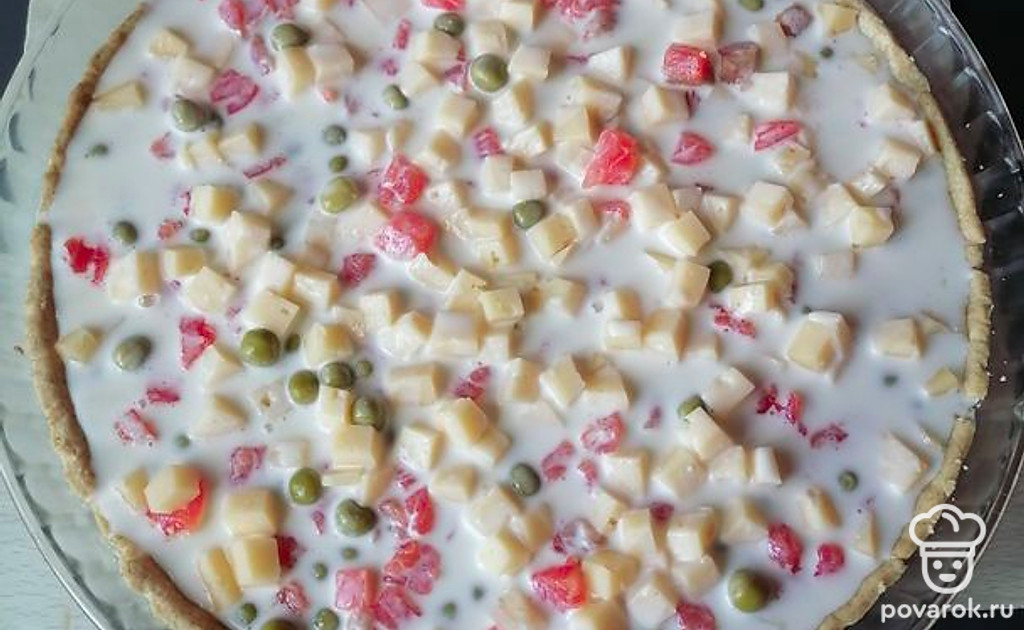 Заливаем яйцом, смешанным со сметаной.