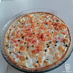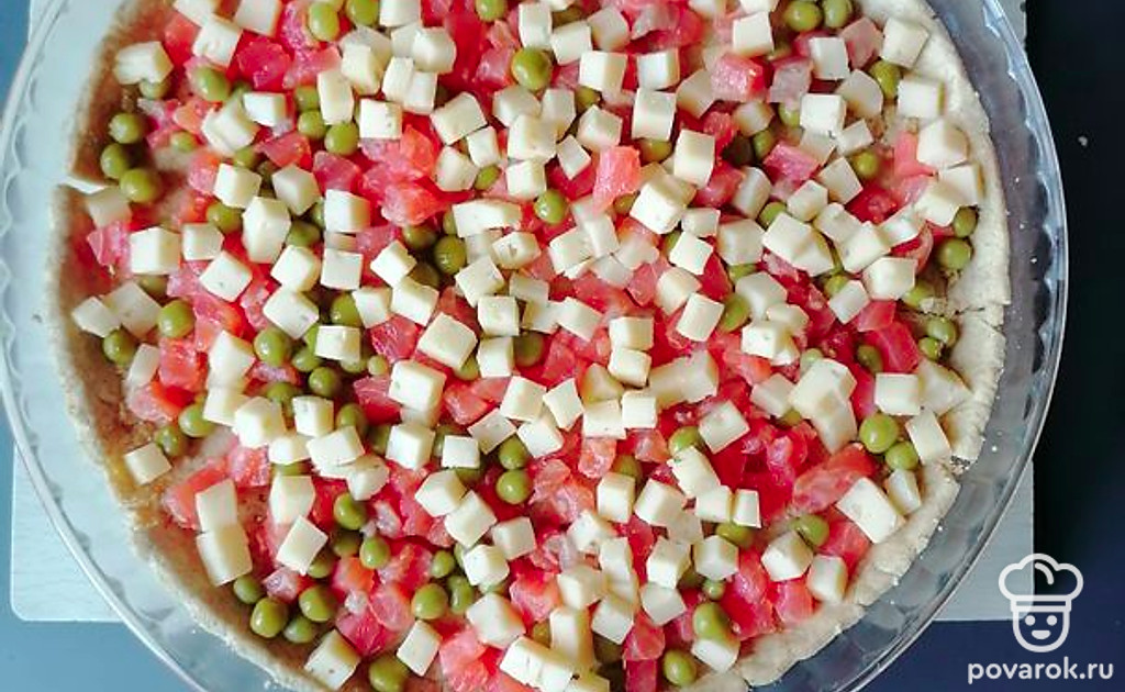 Достаем основу из духовки, распределяем начинку.
