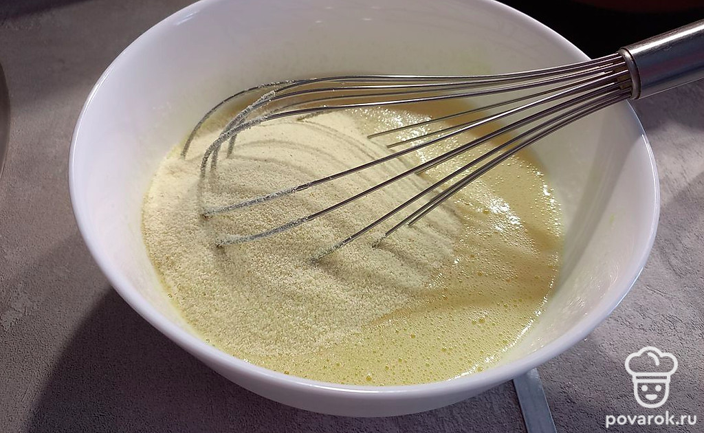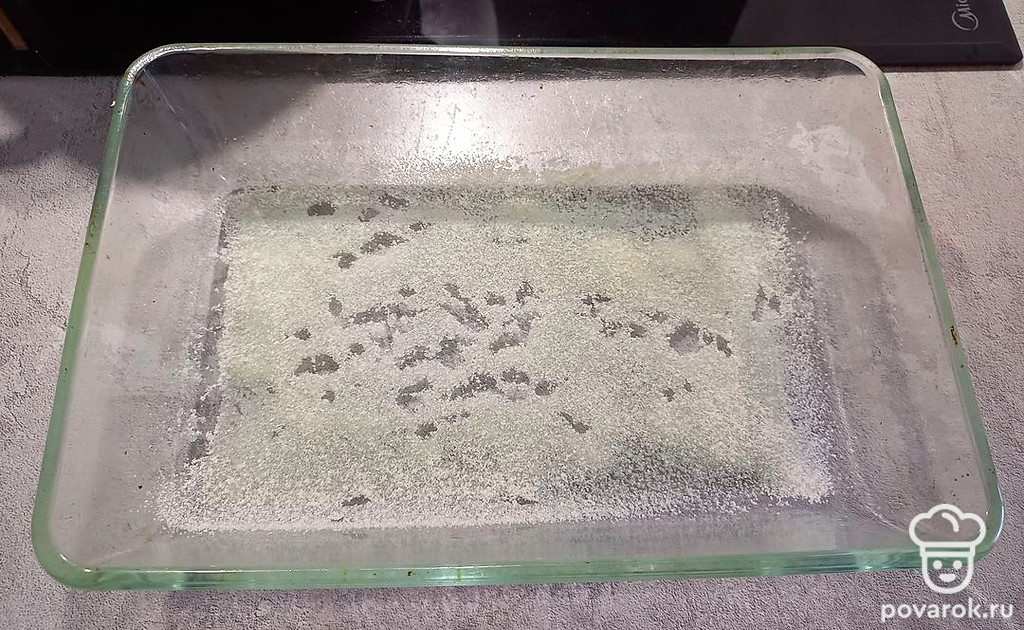 Форму для выпекания смазать растительным маслом и посыпать манкой.