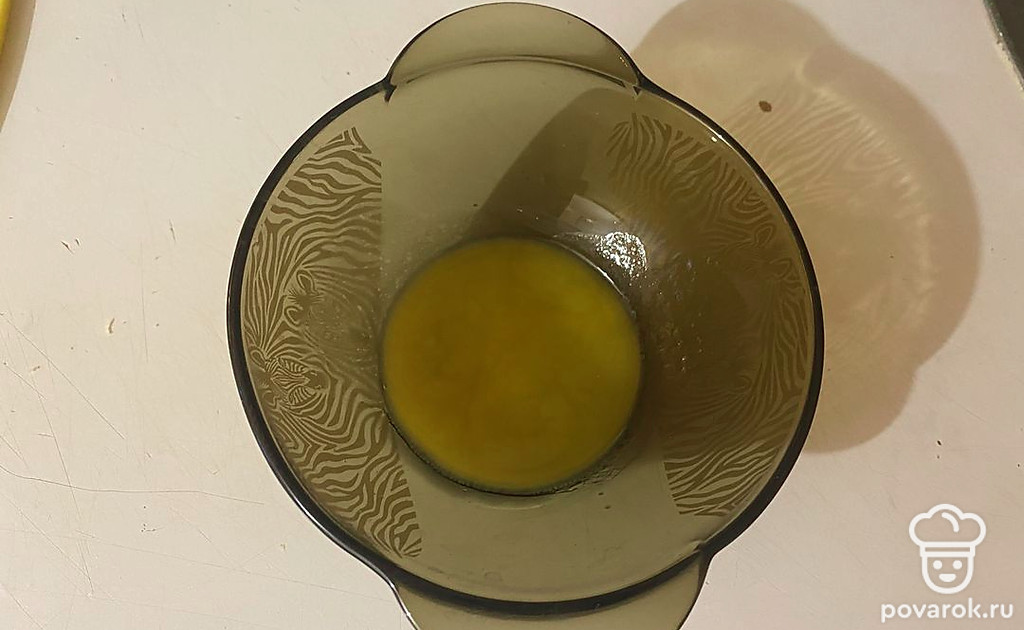 Сливочное масло растопите в микроволновой печи в течении одной минуты.