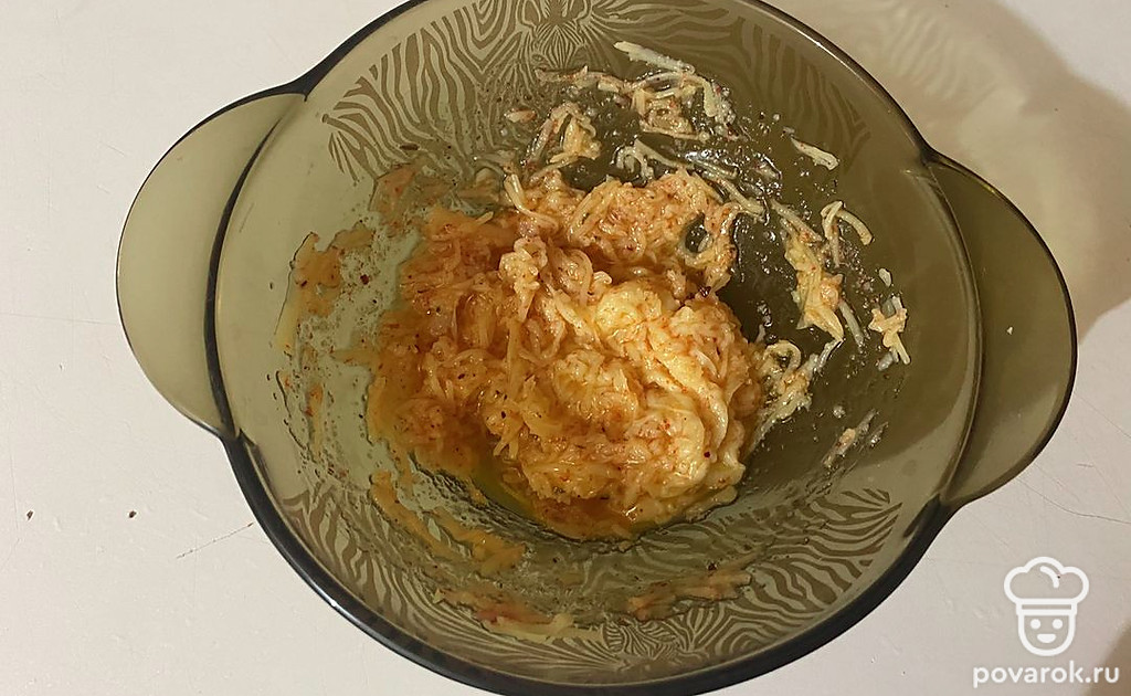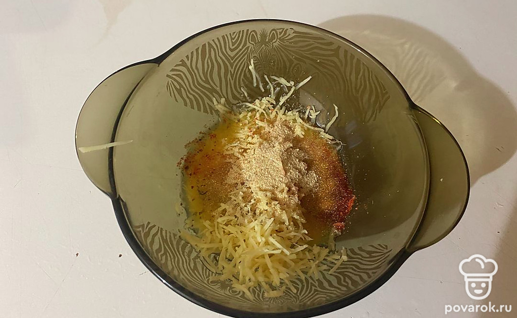 В растопленному маслу добавьте натёртый сыр, соль, чеснок и копчёную паприку.
