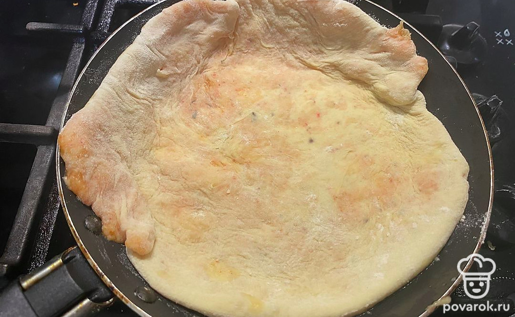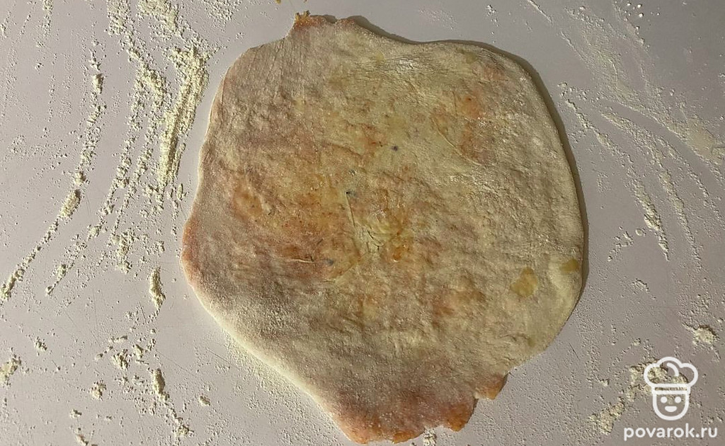 Обжаривайте лепёшку с каждой стороны по пять минут.