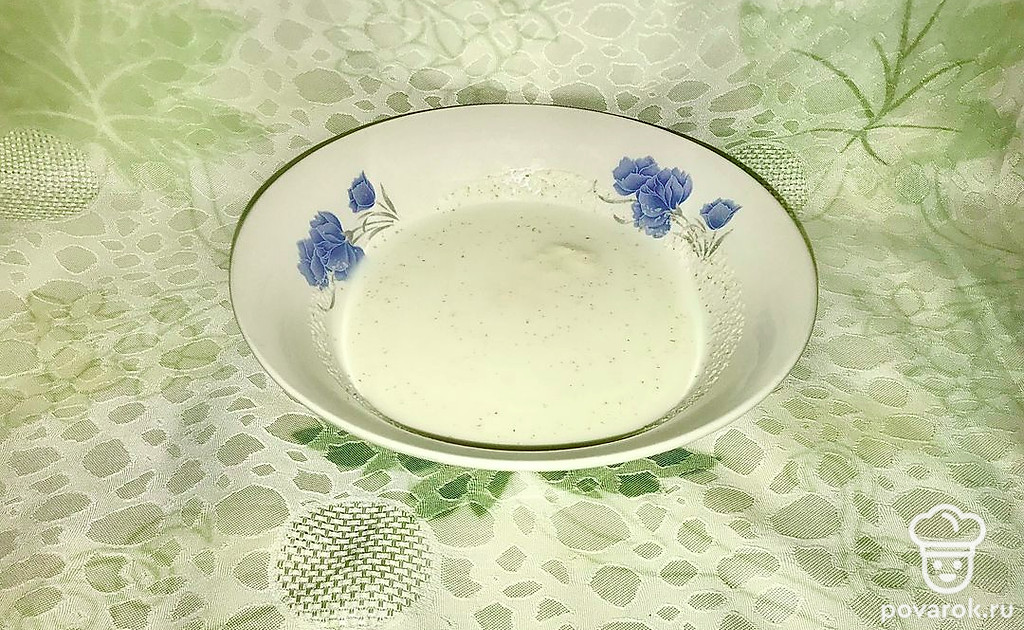 Залить манную крупу молоком комнатной температуры и оставить набухать на 20 минут.