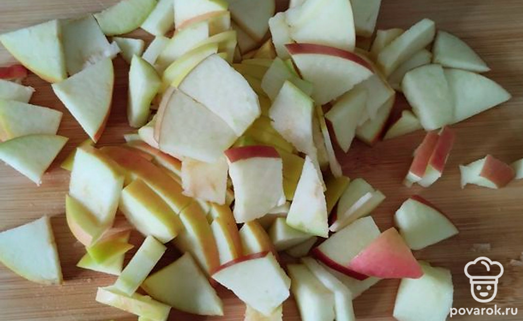 Яблоки мелко порезать.