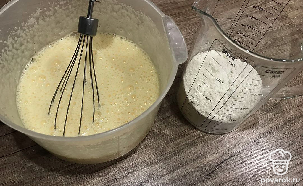 Добавьте муку и перемешайте.