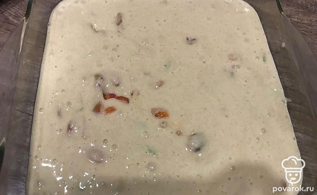 Тесто переложите в форму для запекания. Можно смазать немного растительном маслом или сливочным.
