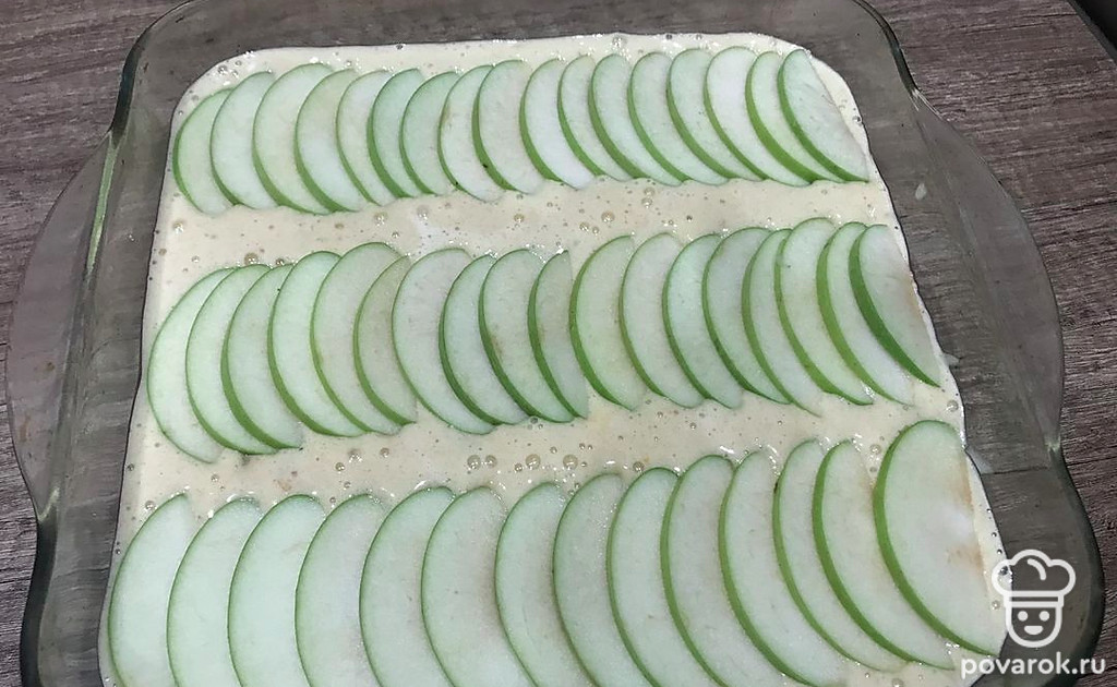 Красиво выложите дольки яблок и ставьте в духовку, разогретую до 180 градусов, на 40 минут.