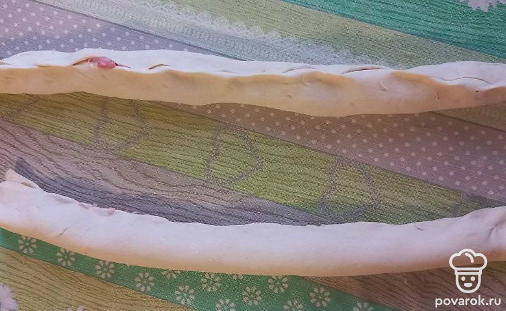 Тесто раскатываем и разрезаем на полоски, примерно 7 на 20 сантиметров.