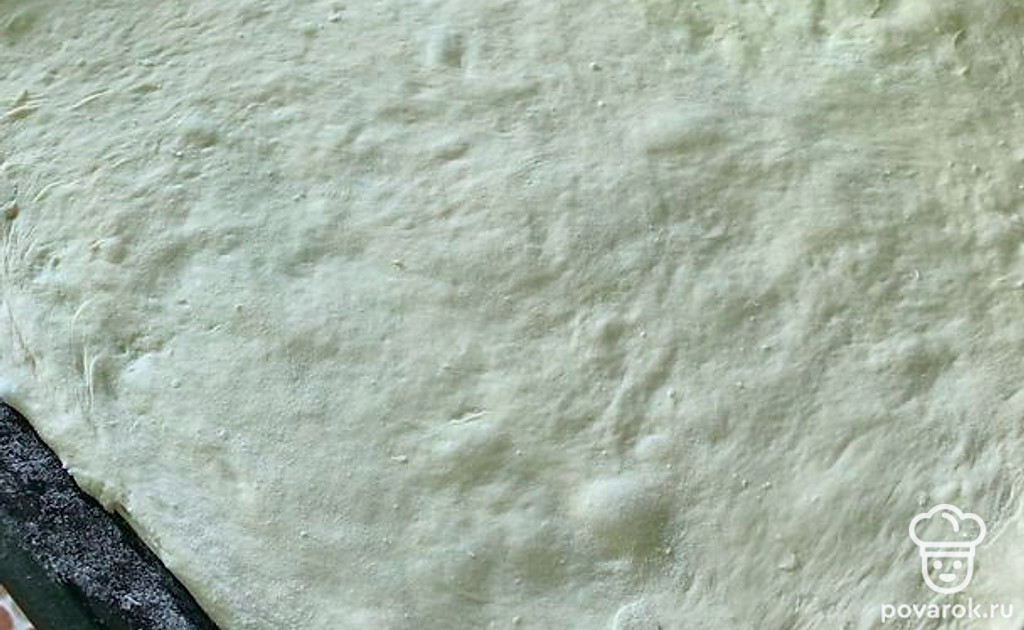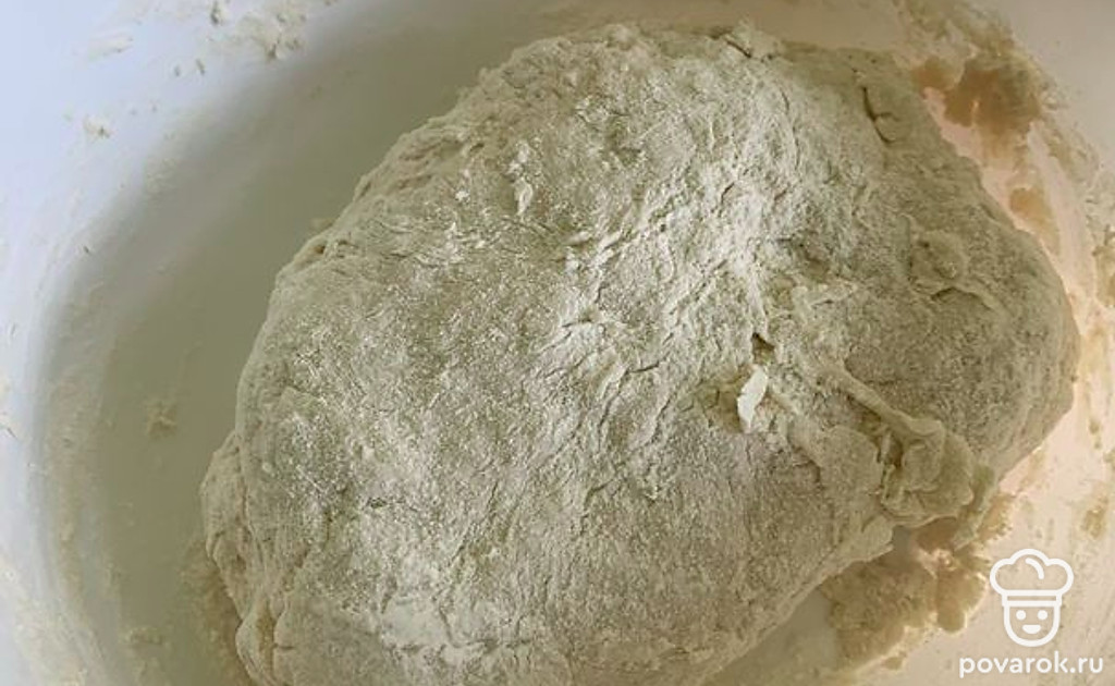 Добавляем муку и замешиваем тесто, оставляем в тёплом месте на 1-1,5 до поднятия.