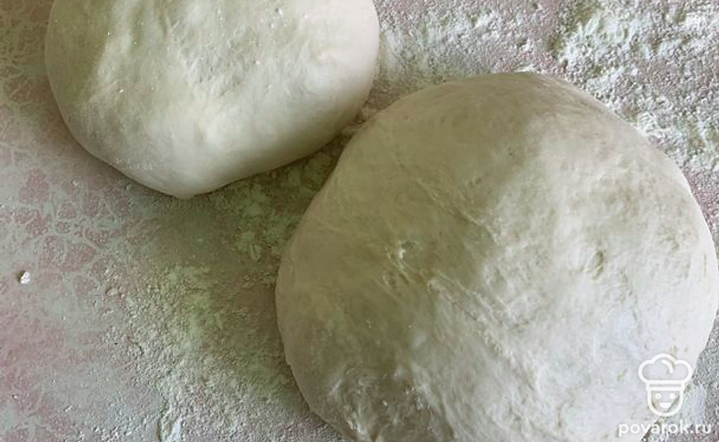 После того как тесто поднялось, делим на 2 части и оставляем ещё на 15-20 минут подниматься.