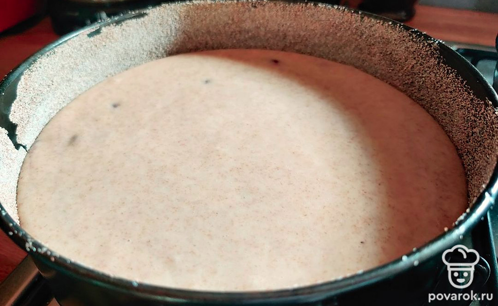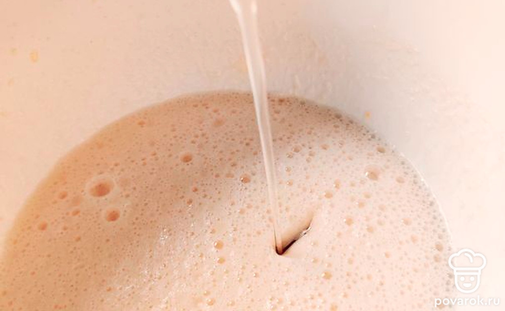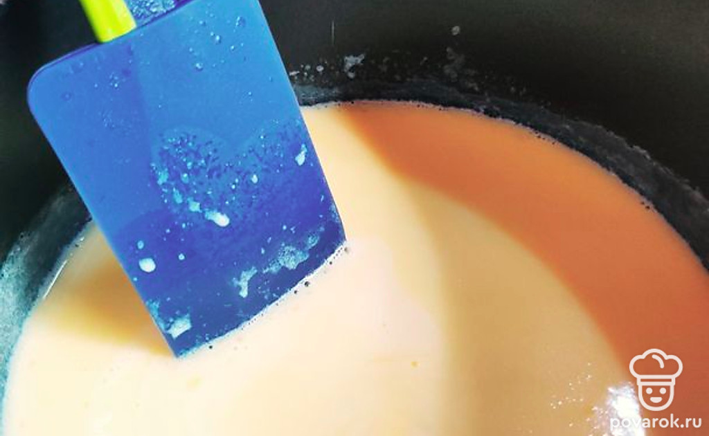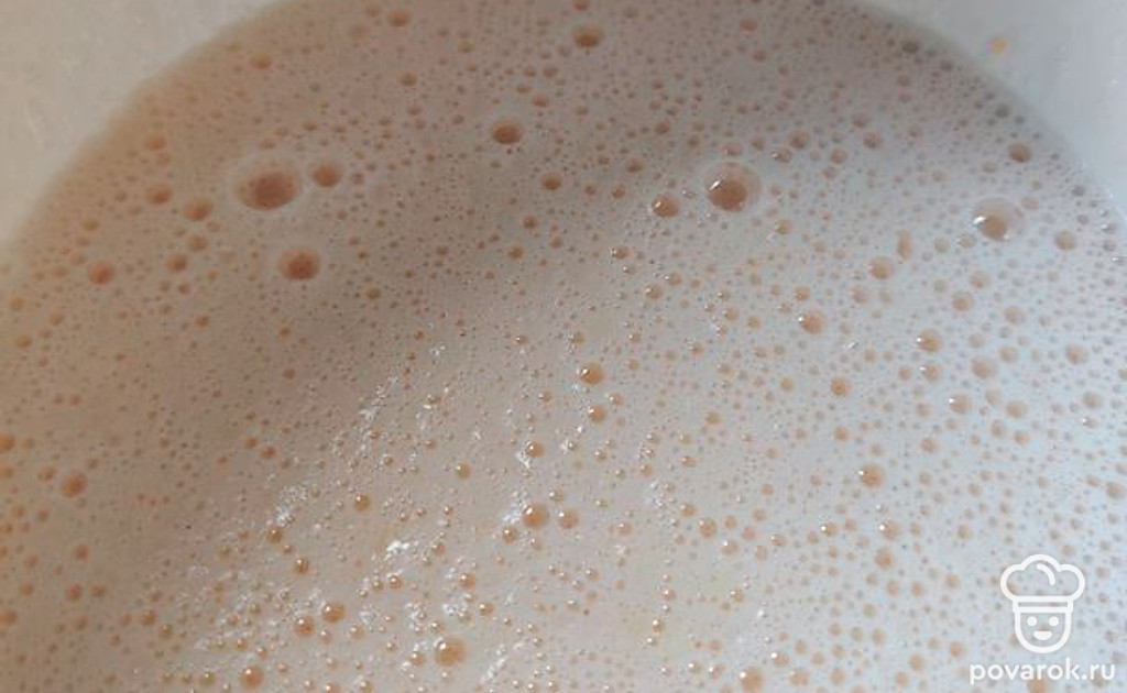 Молоко довести до кипения и растворить в нем сливочное масло. Снять с огня и остудить до 40-50 градусов.