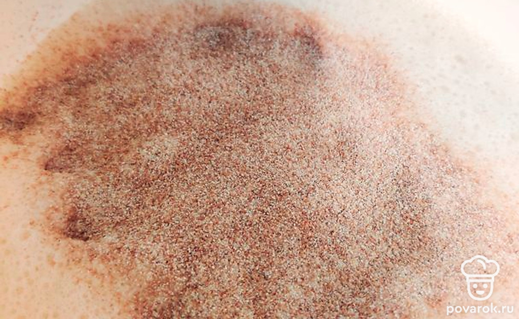 Частями всыпаем манку и перемешиваем венчиком, чтобы не образовывались комочки. И оставляем набухать манку на 10-15 минут.