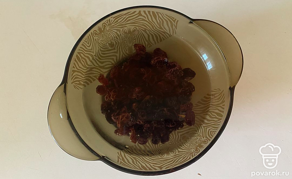 Изюм замочите кипятком и оставьте его стоять, пока мы с вами будем готовить тесто.