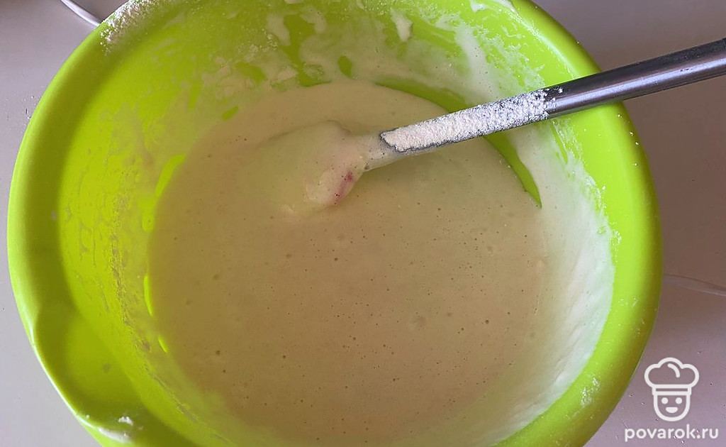 С помощью лопатки перемешайте до исчезновения комочков муки.