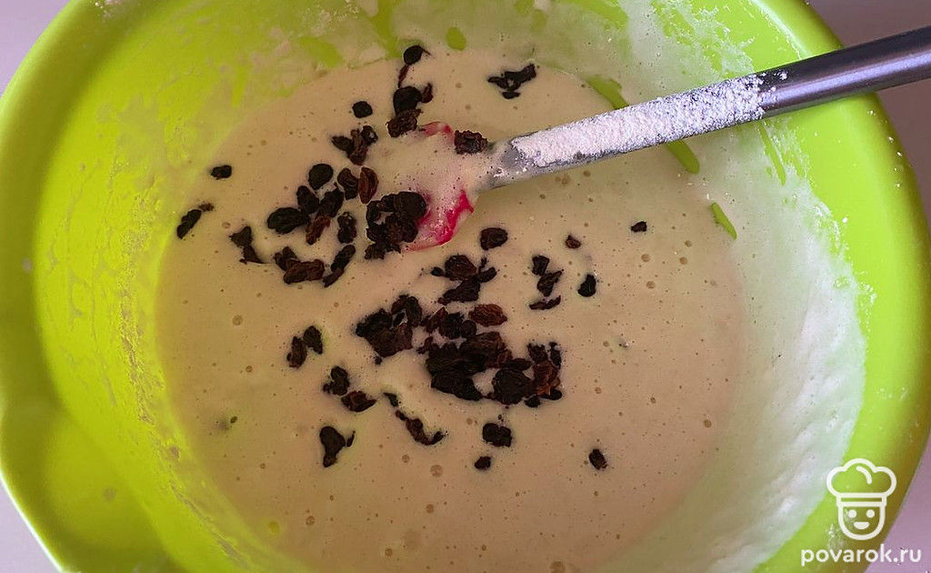 Перемешайте, чтобы изюм равномерно распределился по тесту.