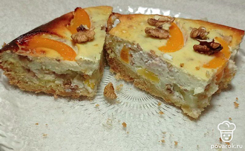 Несмотря на быстроту, с которой этот пирог готовится, он получается вкусным, красивым по виду и может стать достойным десертом к семейному чаепитию. Творог в его составе создает прослойку со сливочной текстурой, а курага ― душистый абрикосовый аромат. Пирог приготовлен из простых и недорогих продуктов, процессы несложные и доступные. Однако учитывайте, что любая выпечка калорийная и нею не следует увлекаться.