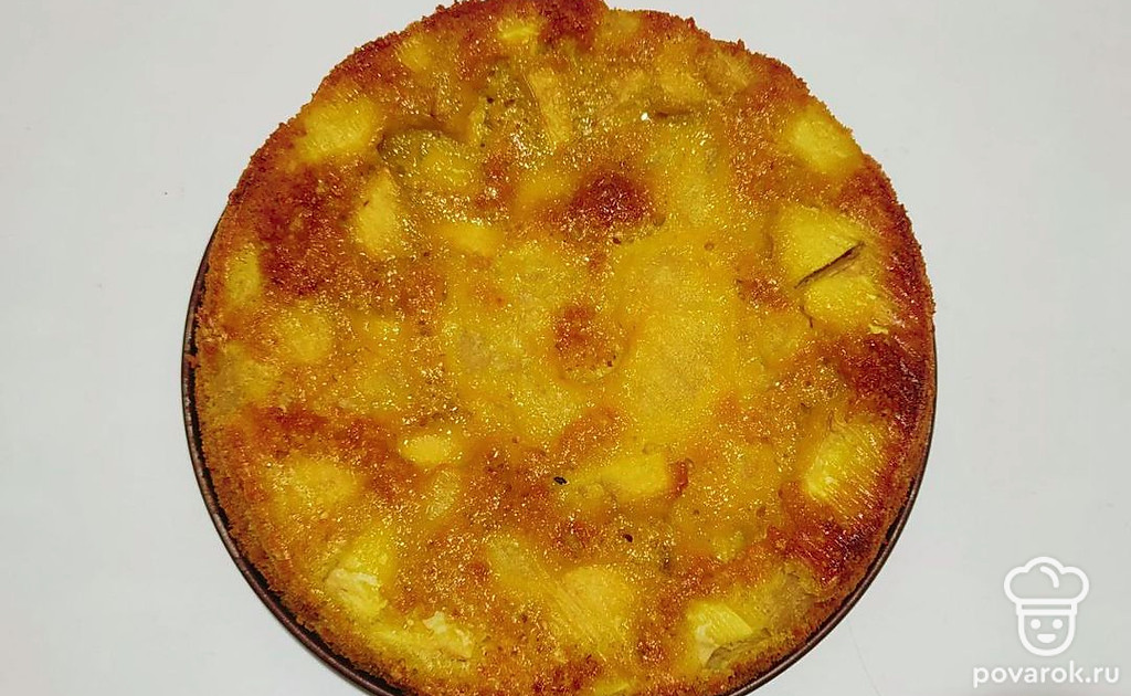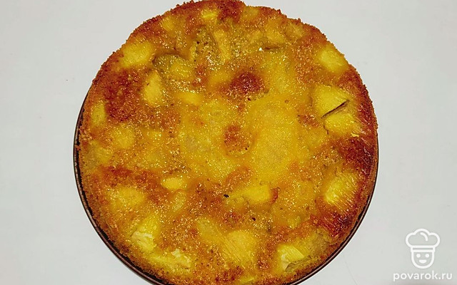 Нежный пирог с грушами и яблоками в духовке посыпьте сахарной пудрой, разрежьте на порционные кусочки и подавайте в сочетании со свежезаваренным чаем или кофе.