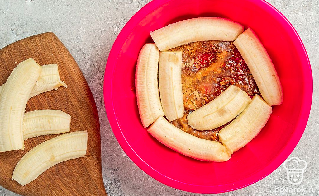 Этот постный банановый пирог готовится с карамелью. Чтобы сахар для карамели не подгорел, используйте кастрюлю или сковороду с толстым дном и стенками. Для приготовления пирога возьмите свежие бананы. Слегка зеленоватые плоды содержат натрий, необходимый для поддержания водно-солевого баланса. Спелые бананы богаты калием. Стоит учитывать, что калорийность повышается в зависимости от степени зрелости бананов.