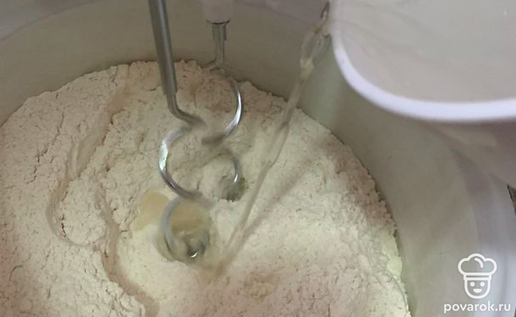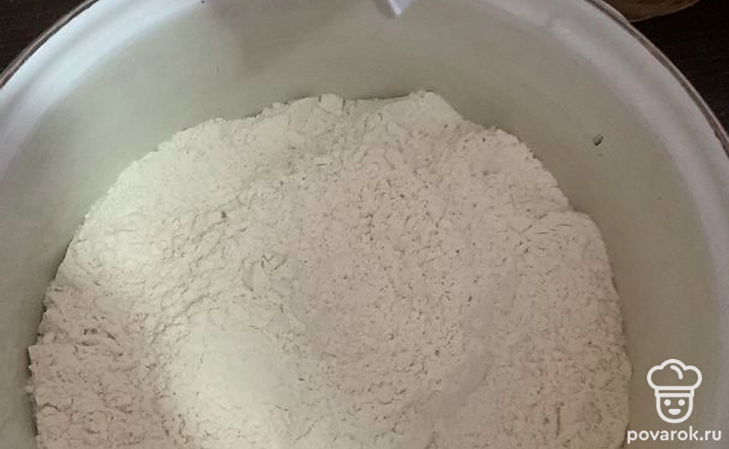 Сделаем тесто: смешать муку с дрожжами и оставить на 20 минут.