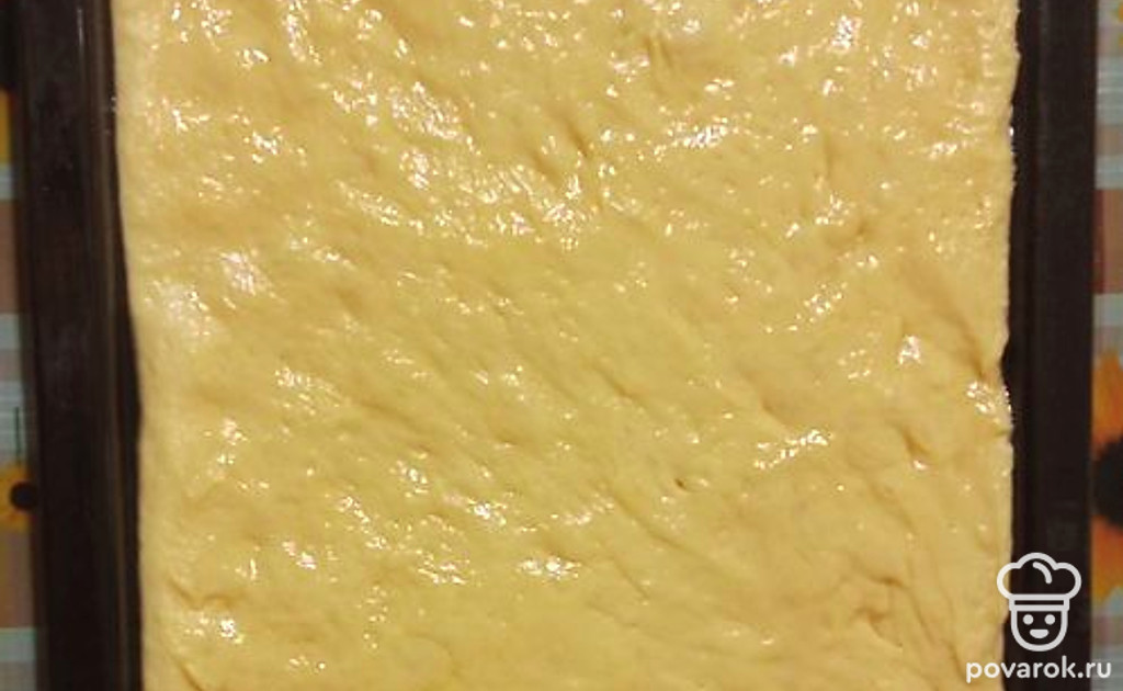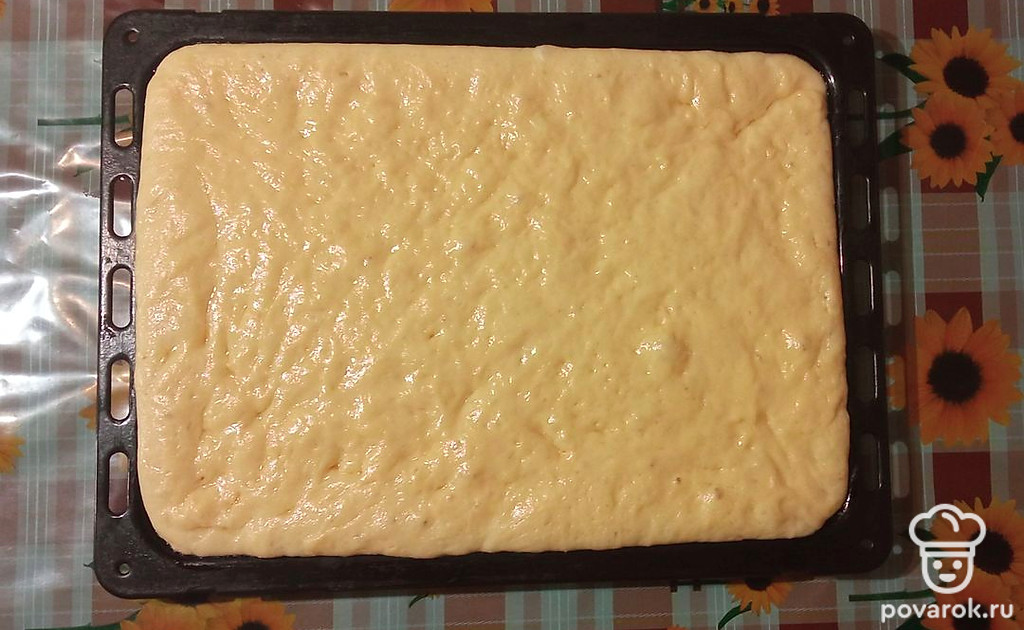 Переложите тесто в форму (22 на 30 сантиметров), предварительно смазанную и застеленную бумагой.