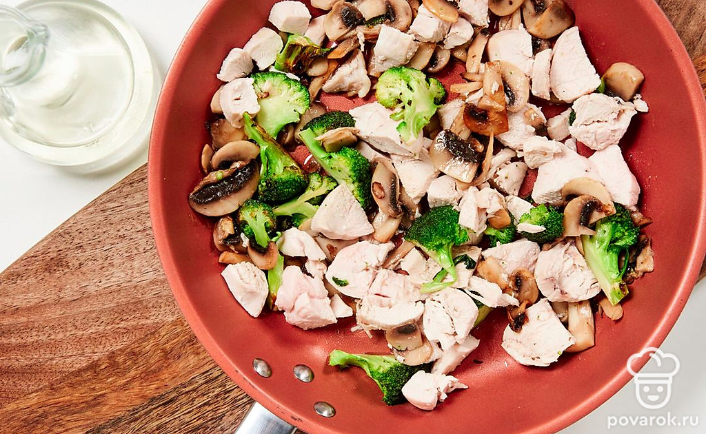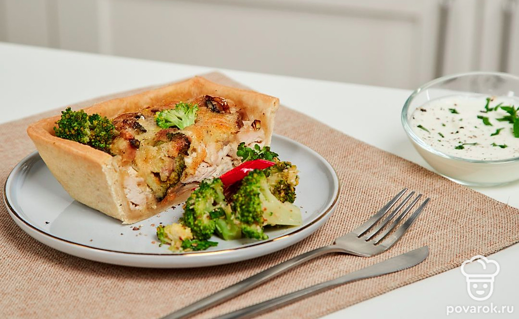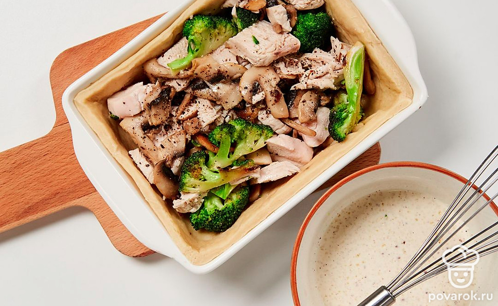 Лоранский пирог с курицей, грибами и брокколи — диетический вариант традиционного французского пирога. Чтобы еще уменьшить калорийность готового блюда, для заливки возьмите сливки 20%, но уменьшите их количество в рецепте, иначе начинка получится жидкой, и отдайте предпочтение обезжиренным сырам. А чтобы сделать вкус пирога интереснее, используйте для заливки комбинацию из двух различных сыров, это внесет оригинальную вкусовую нотку. Для аромата добавьте прованские травы в начинку или заливку.