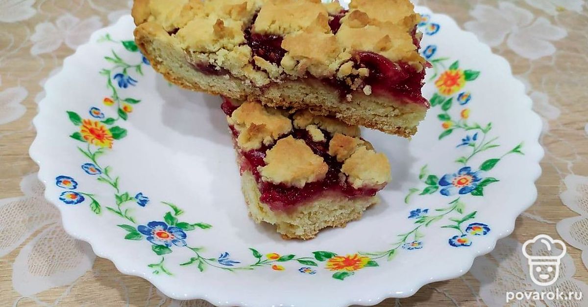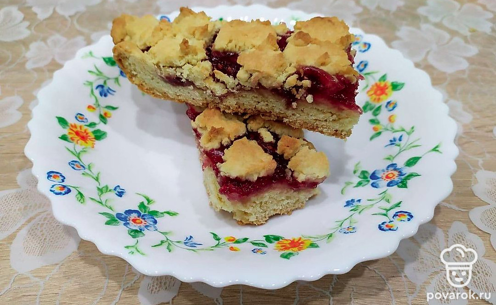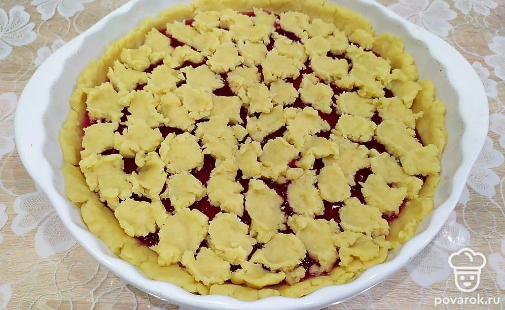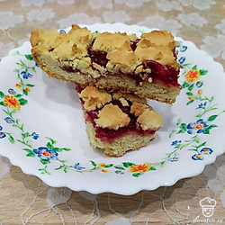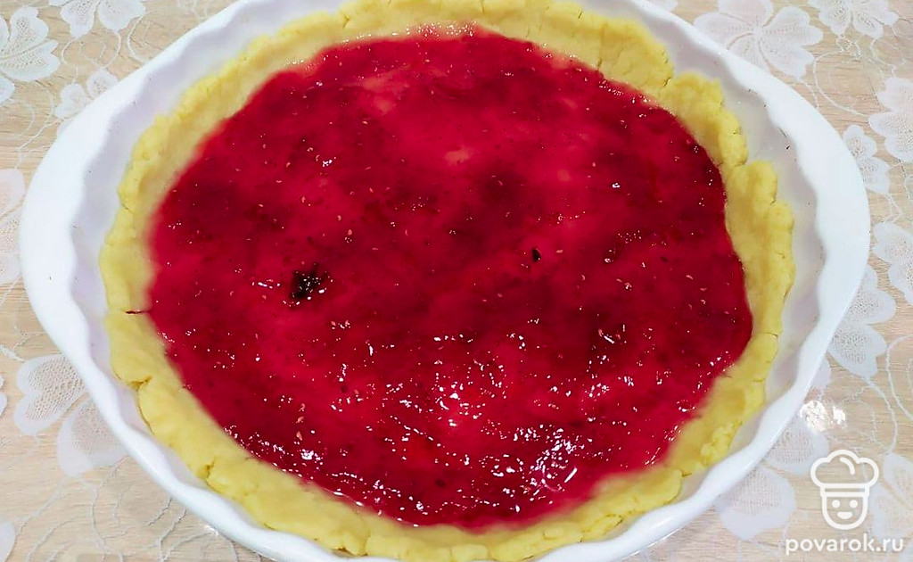 Выложить повидло (у меня клубничное) на основу и равномерно распределить ложкой.