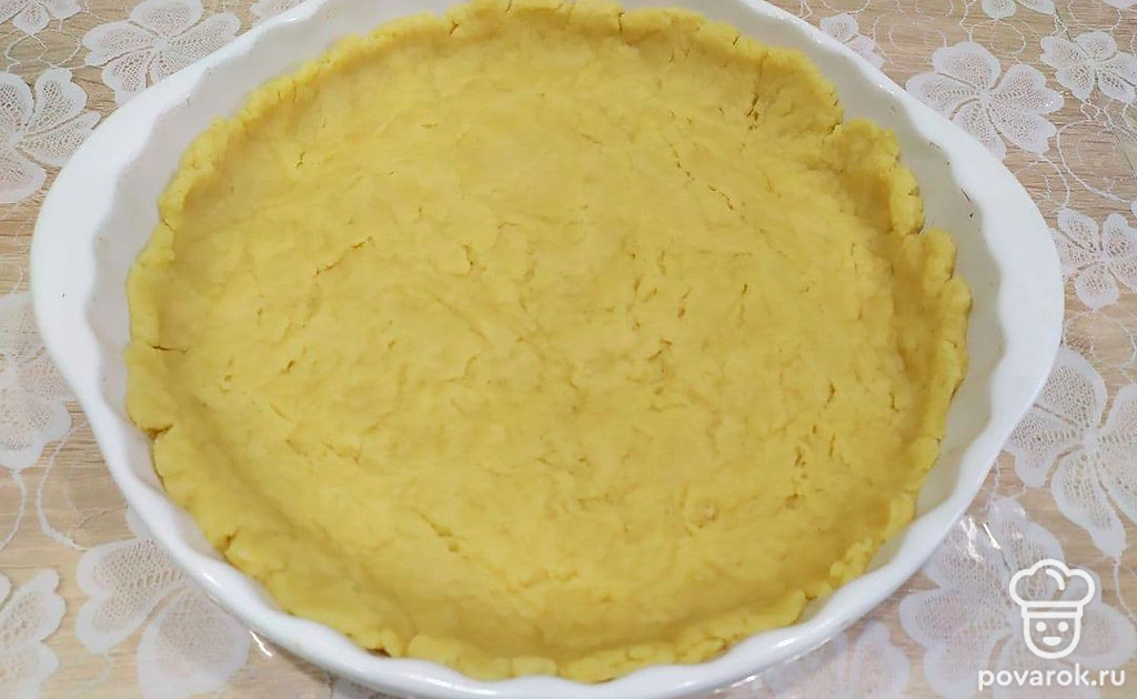 Взять ту часть, что побольше, и сформировать дно и бока на форме для выпечки.