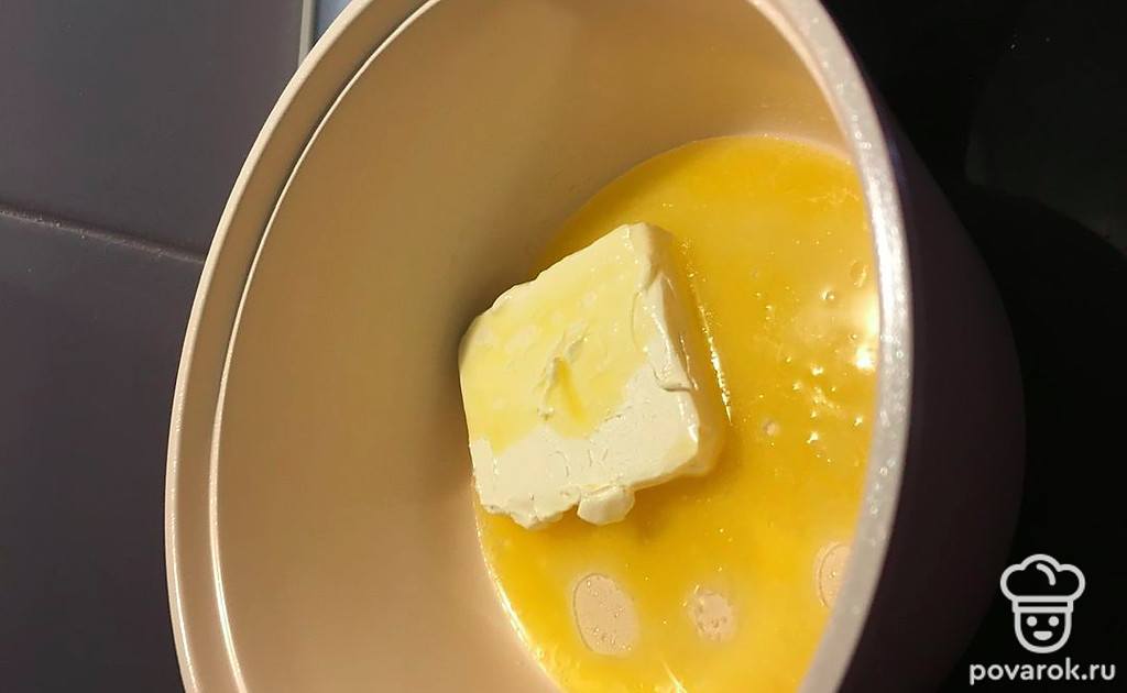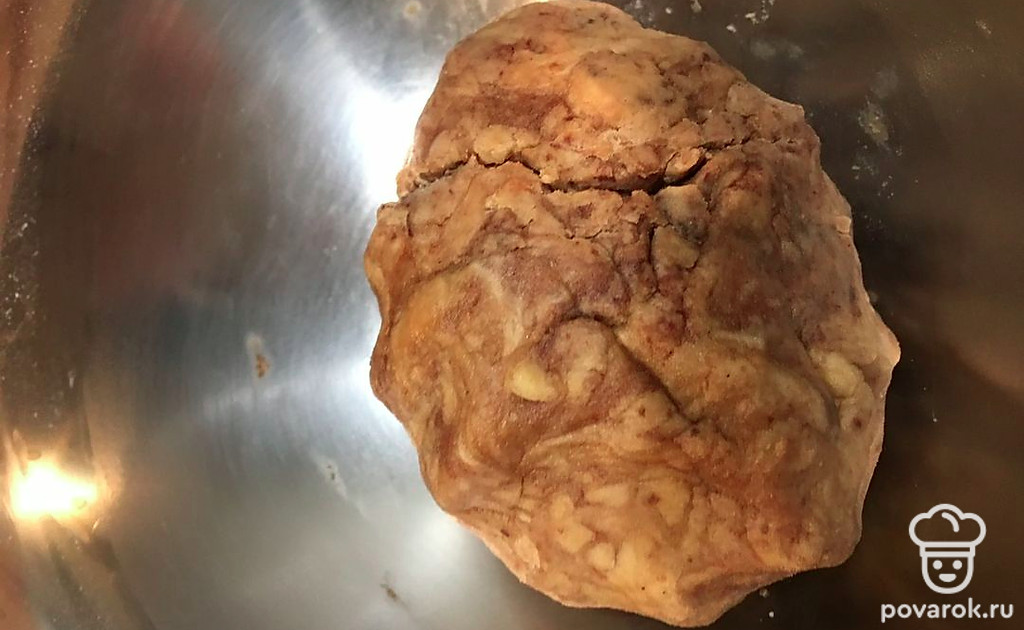 Добавить к сухим ингредиентам растопленное масло и сметану 2 ст.л., тщательно перемешать. Тесто должно получиться мягким и пластичным. Сформировать шарик.