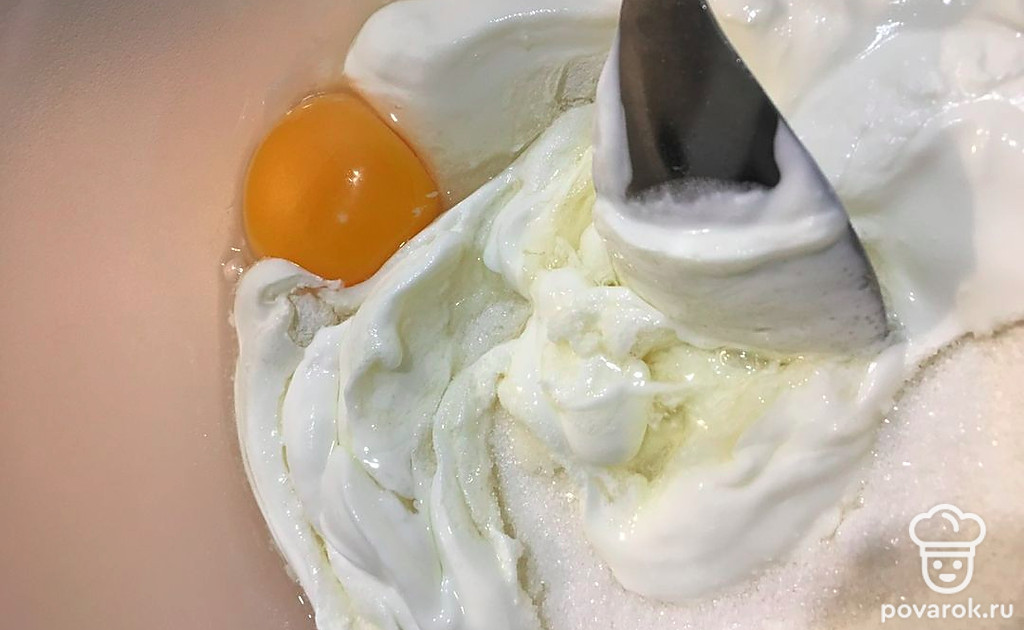 Для приготовления начинки нужно соединить в миске яйцо, сахар 100г., сметану 200г., муку 2 ст.л. Тщательно все перемешать.