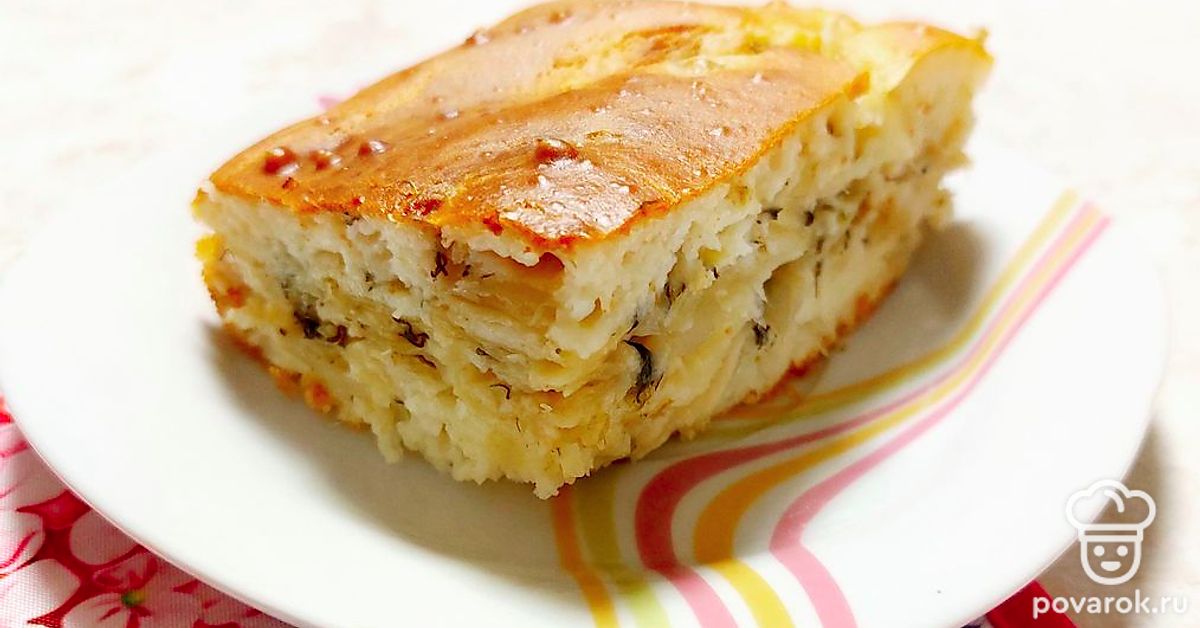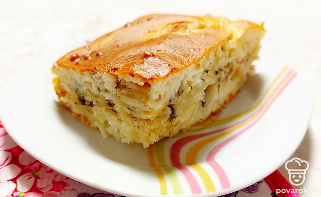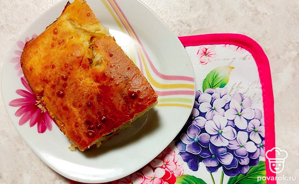 Заливной пирог по этому рецепту получается румяный снаружи и мягкий внутри, а также долго не черствеет.