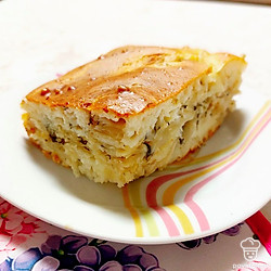 После того, как вы достали пирог из духовки, даем ему немного "отдохнуть", так он не распадется, когда вы будете его нарезать. Пирог хорош как в горячем, так и в холодном виде.