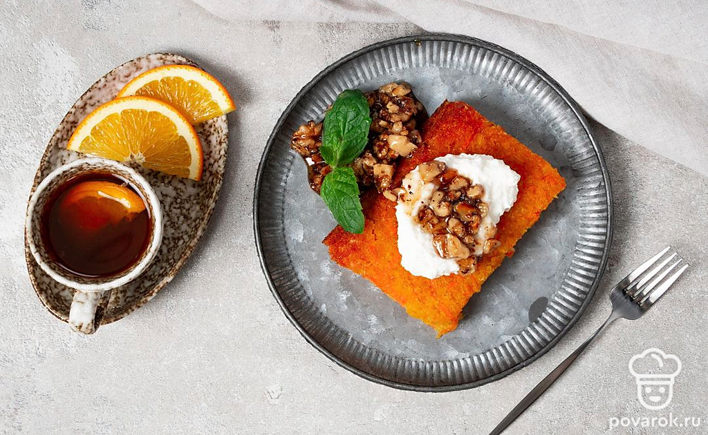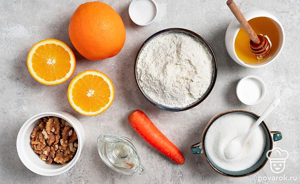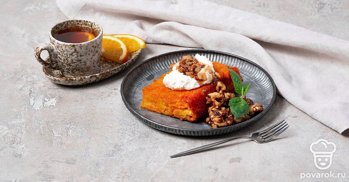 Ароматный и нежный пирог с апельсинами и морковью можно есть и во время поста. Пирог готовится без добавления яиц и сливочного масла, но во вкусе он от этого не теряет. Выпечка получается пышной за счет разрыхлителя. Мед придаст ей приятный аромат и вкус, а морковь окрасит пирог в оранжевый цвет. При желании можно добавить в тесто пряности.
