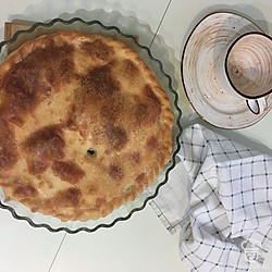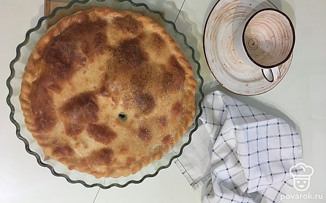 Готовый пирог сразу после духовки смажьте сливочным маслом. Подавайте теплым.