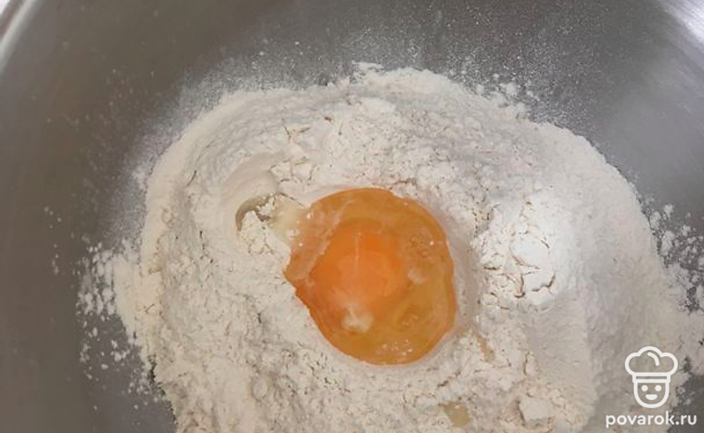 В миску просейте муку, добавьте сначала яйцо, затем соль, молоко и растительное масло. Замесите тесто до однородной текстуры сначала в миске, а затем вымесите на столе руками.
