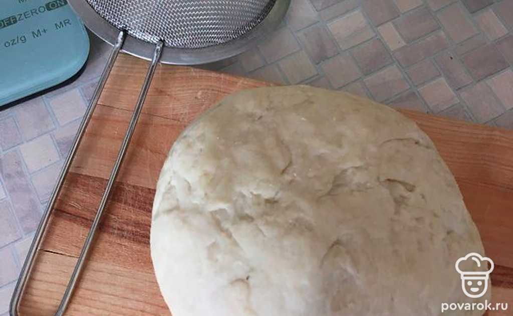 Получившееся тесто оберните пленкой и уберите в сторону постоять.