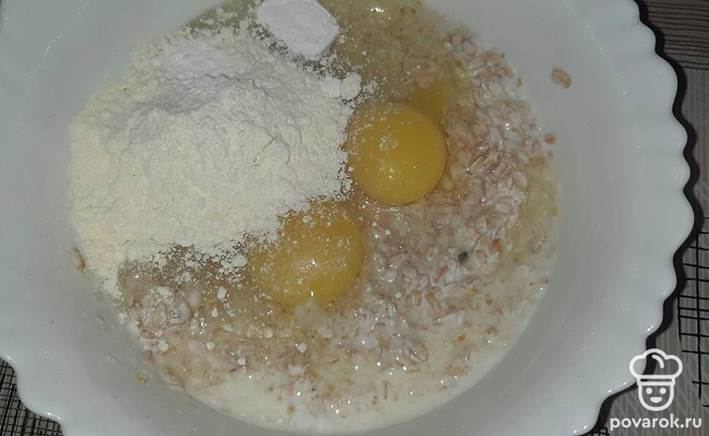 Рецепт взяла у подруги. Получается вкусный, оригинальный и низкокалорийный овсяный пирог без муки.