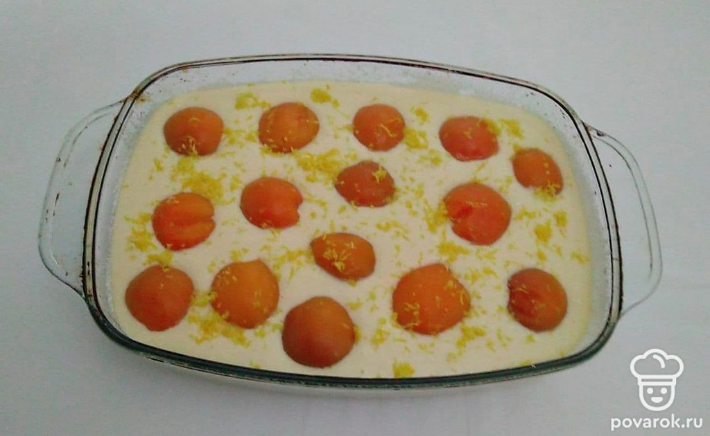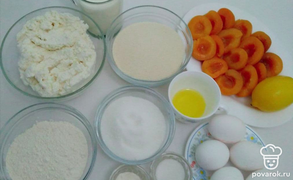 Творожный манник с абрикосом и лимонной цедрой это сладкое и воздушное мучное блюдо, с творожно-фруктовым вкусом. Поскольку пирог готовиться на кефире, твороге с большим количеством яиц он получается пушистым, пористым с румяной корочкой. Лимонная цедра придает пирогу необыкновенный нежный тонкий аромат и приятный лимонный привкус. А дольки абрикоса наполняют пирог летним кисло-сладким вкусом.