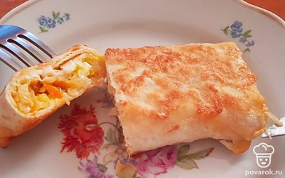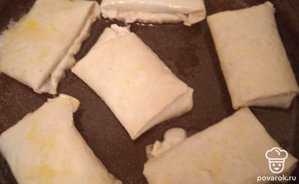 Смажьте конверты сырым взбитым яйцом. Обжарьте с двух сторон до румяной корочки.