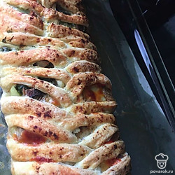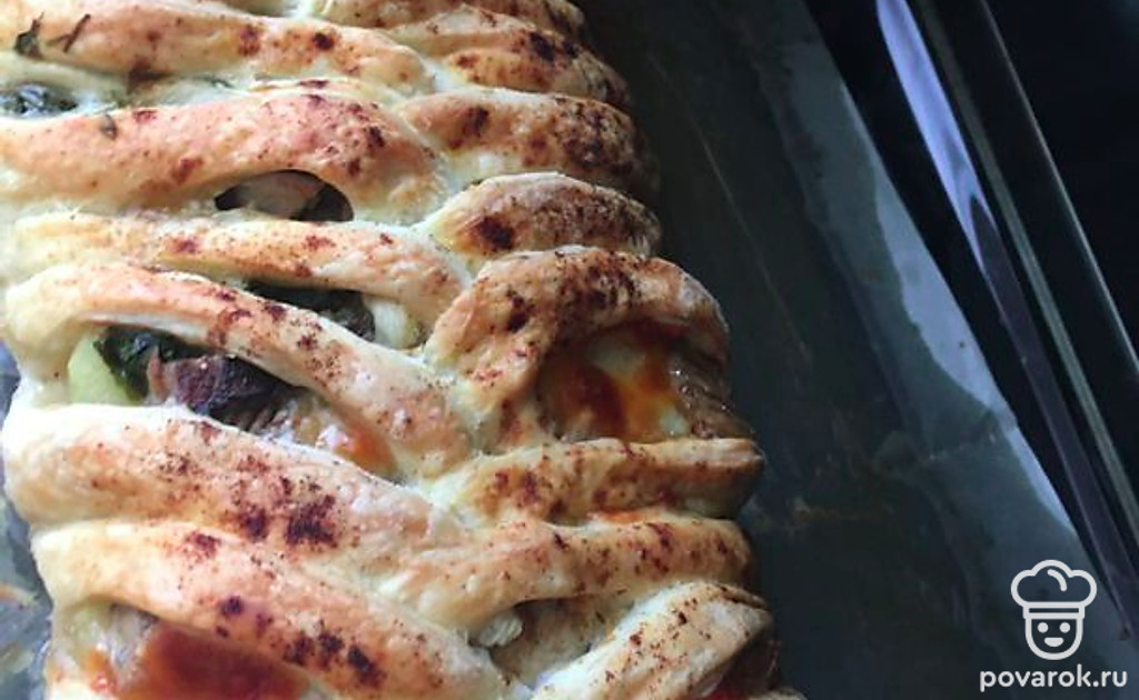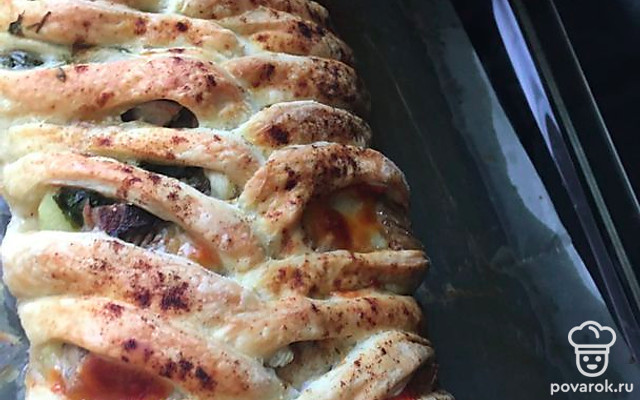 Подавайте пирог к столу горячим и разрезанным на порционные куски.
