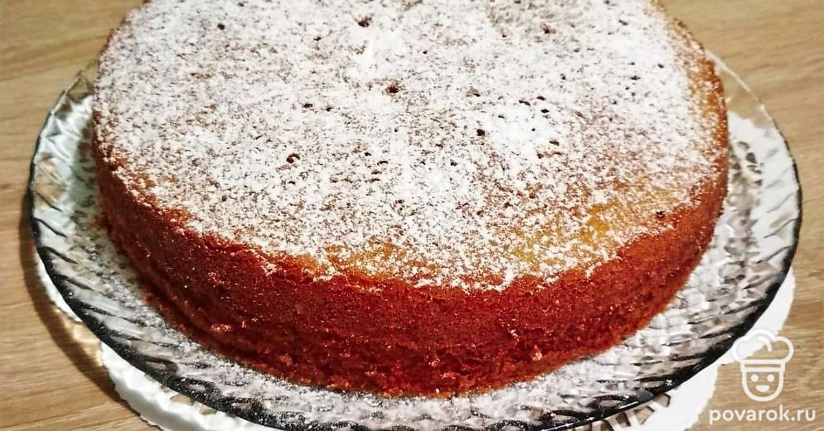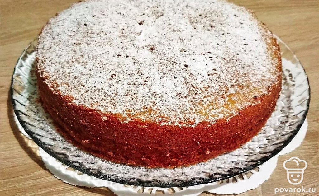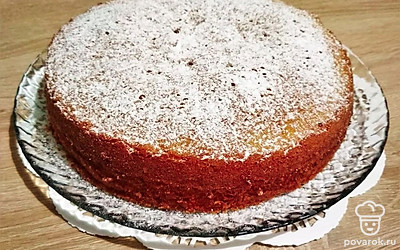 Остудите пирог в перевернутом виде не извлекая из формы. Готовый пирог присыпьте пудрой и нарежьте на порции, заварите чашечку ароматного чая и наслаждайтесь вкусным угощением.