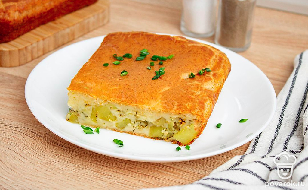 Сытные пироги с овощной или мясной начинкой являются одним из самых известных блюд домашней кухни. Такие пироги довольно часто подают в качестве основного блюда на семейных застольях. Заливной пирог с картофелем в специях очень популярен в России. Он идеально подойдет для большой компании. Между двумя слоями заливного теста толстая прослойка мелконарезанного кубиками картофеля. Никто не останется голодным! Сытный картофельный пирог с хрустящей корочкой из теста понравится всем гостям!
