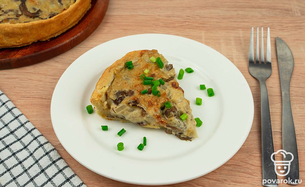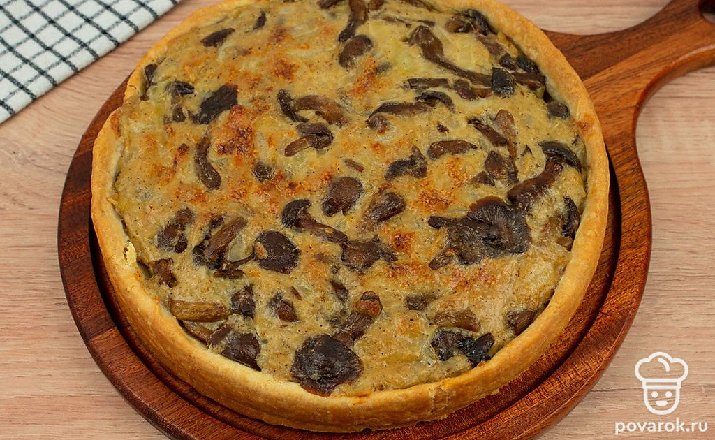 Пирог с опятами и жареным луком в сливочном соусе — отличное блюдо для полдника или перекуса. В качестве основы для пирога используется песочное тесто. Блюдо очень напоминает знаменитый французский киш. Такая выпечка точно порадует, а может и удивит ваших гостей. Попробуйте!