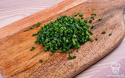 Зеленый лук нарежьте колечками. В начинку используйте только зеленую часть стрелки.