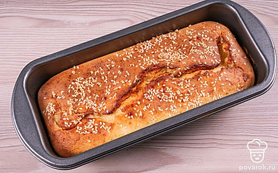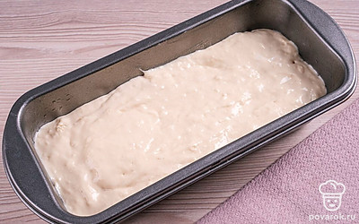 Форму для выпечки смажьте маслом или выложите пекарской бумагой, на дно выложите часть теста, равномерно распределяя по форме. Затем равномерно выложите начинку.