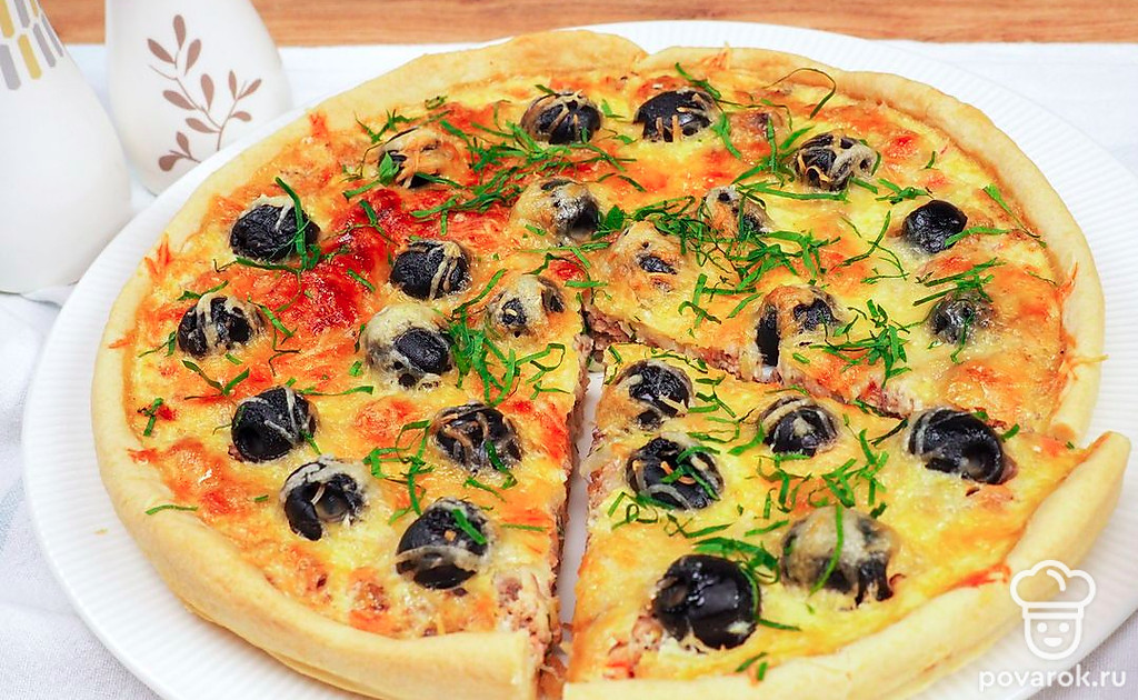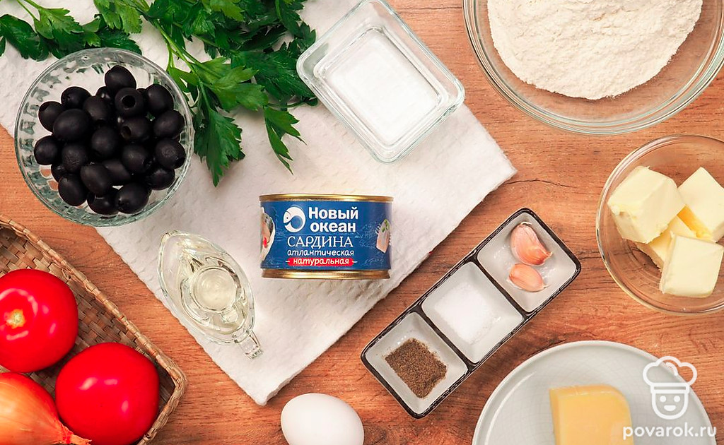 Подавайте киш с сардиной и маслинами со свежей зеленью, которая придаст ему пикантность и оттенит аромат рыбы.