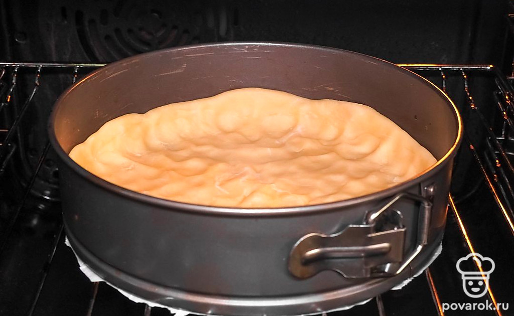 Приготовьте тесто для киша. Муку насыпьте в глубокую емкость, натрите туда же масло, добавьте воду и замесите тесто. Слепите из него шар, накройте полотенцем и дайте постоять в холодильнике 60 минут. Затем включите духовку на 200 градусов, раскатайте тесто по форме для выпечки и отправьте его в духовку на 15 минут.