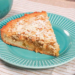 Подавайте пирог с джемом горячим, украсив сахарной пудрой.